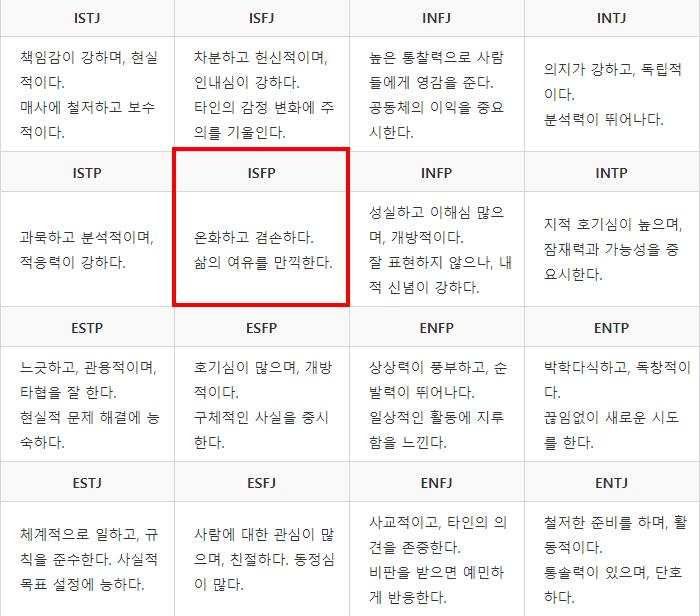 ISFP의 특성은